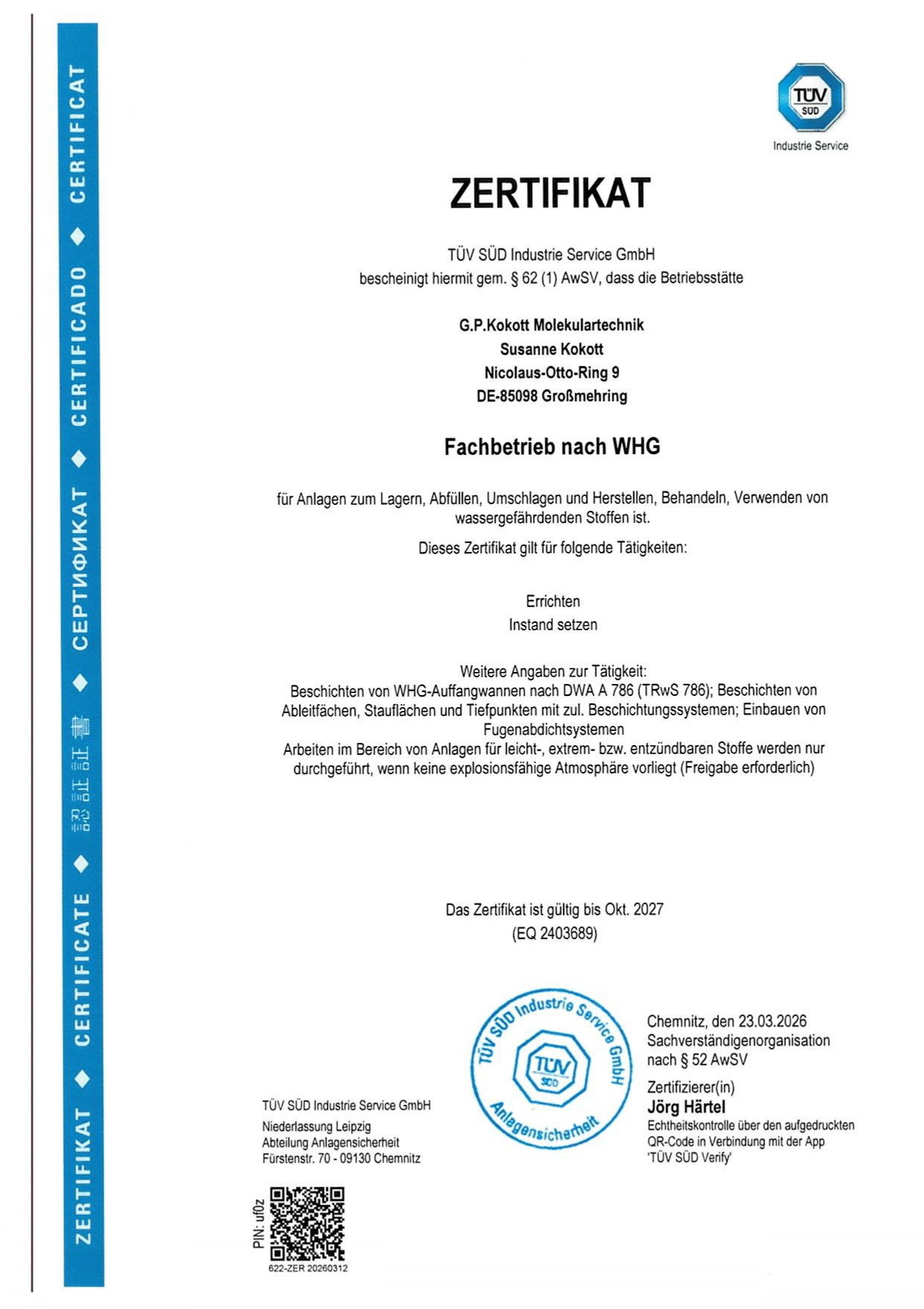 Nach dem Tod von Herrn Gerd P. Kokott sen. übernahm seine Tochter Susanne Kokott die Firmenleitung, nachdem sie bereits seit etwa zehn Jahren im Unternehmen tätig war. Frau Susanne Kokott führt das Unternehmen seitdem erfolgreich und mit vollem Einsatz weiter.